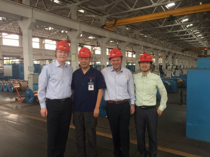 2015年9月24日,萊尼集團(tuán)亞太區(qū)總裁JerryCUMMINS先生、萊尼德國(guó)總部采購(gòu)高級(jí)副總裁RichardPAGLIA先生以及中國(guó)事業(yè)區(qū)戰(zhàn)略采購(gòu)總監(jiān)韓軍先生一行三人來(lái)江潤(rùn)銅業(yè)考察交流,公司總經(jīng)理駱偉棟先生熱情接待了萊尼客人一行。 江潤(rùn)銅業(yè)與萊尼集團(tuán)合作十余年之久,由于在復(fù)合導(dǎo)體領(lǐng)域?yàn)槠涮峁┝硕喾N解決方案,降低了生產(chǎn)成本,深受其好評(píng),雙方建立了長(zhǎng)期戰(zhàn)略性合作伙伴關(guān)系。通過(guò)本次訪問(wèn),江潤(rùn)銅業(yè)先進(jìn)的生產(chǎn)設(shè)備、優(yōu)質(zhì)的產(chǎn)品及一流的員工隊(duì)伍給客人留下了深刻的印象,雙方表示將在目前良好合作的基礎(chǔ)上進(jìn)一步加強(qiáng)合作,實(shí)現(xiàn)互惠共贏。